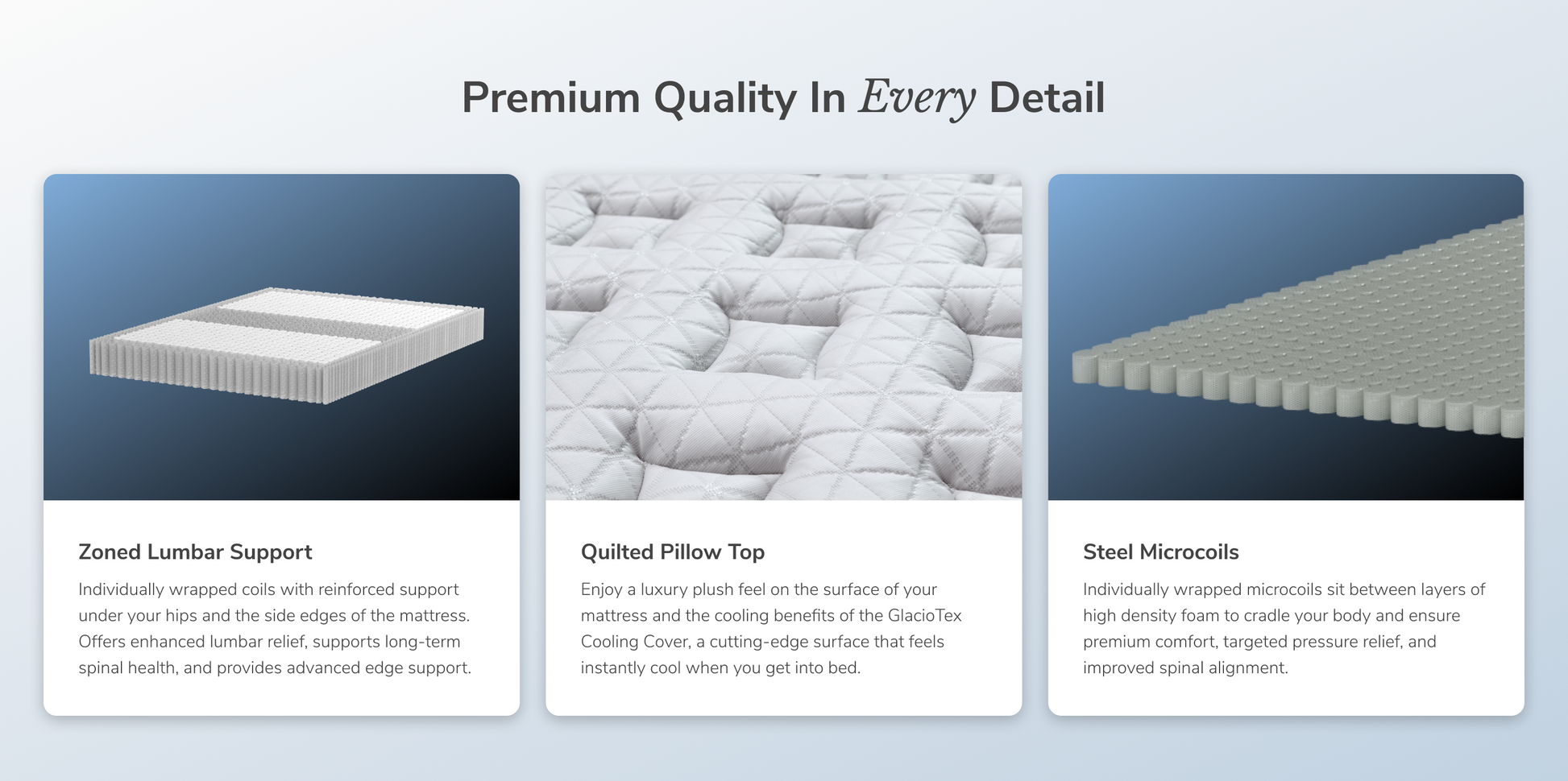 - Individually wrapped steel coils with zoned lumbar reinforcement